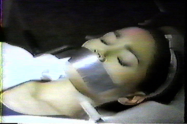Keywords: knockout (blow), leather straps, upper spreadeagle, cleave gag, hands at sides, skirt, nudity, USA