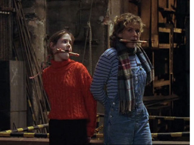 Keywords: cleave gags, rope, hands behind, ankles together, onscreen tying, onscreen gagging, USA