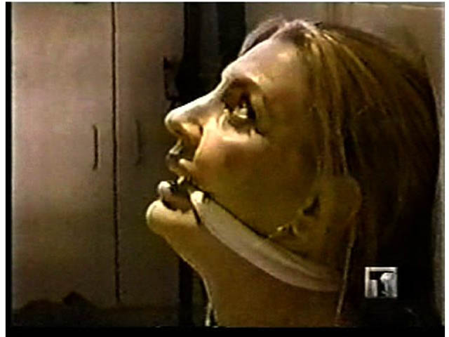 Keywords: tape gag, rope, hands behind, ankles together, onscreen gagging, Mexico