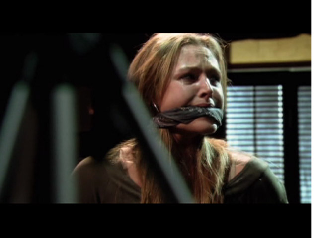 Keywords: knockout (blow), cleave gag, rope, hands behind,ankles to chair legs, USA